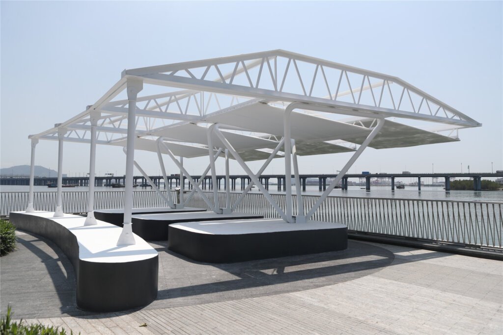 Shenzhen Bay Cultural Park has introduced a striking 700㎡ tensile membrane structure, reshaping how people experience riverside leisure. With a cantilevered canopy design stretching gracefully over both land and water, the project highlights the beauty and flexibility of membrane architecture in public spaces.
