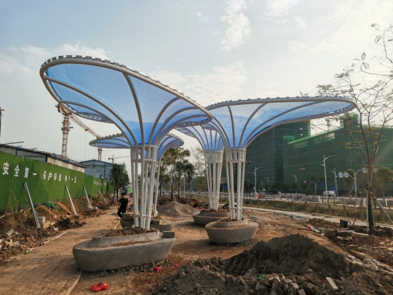 This project features a series of canopy-style pavilions at People’s Square, designed as open flower-like structures to provide both shading and a unique visual landmark. The ETFE membrane was chosen for its lightweight, high transparency, and durability, creating an elegant and modern architectural appearance.